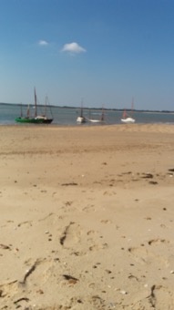 This is a photo from the Drascombe rally on the Walton Backwaters on 2 September 2018. We also attach two photos of a group of Drascombes on an Abu Dhabi beach in the 1980's and our Lugger sailing there. Our children remarked how similar the white beaches looked in both locations.
