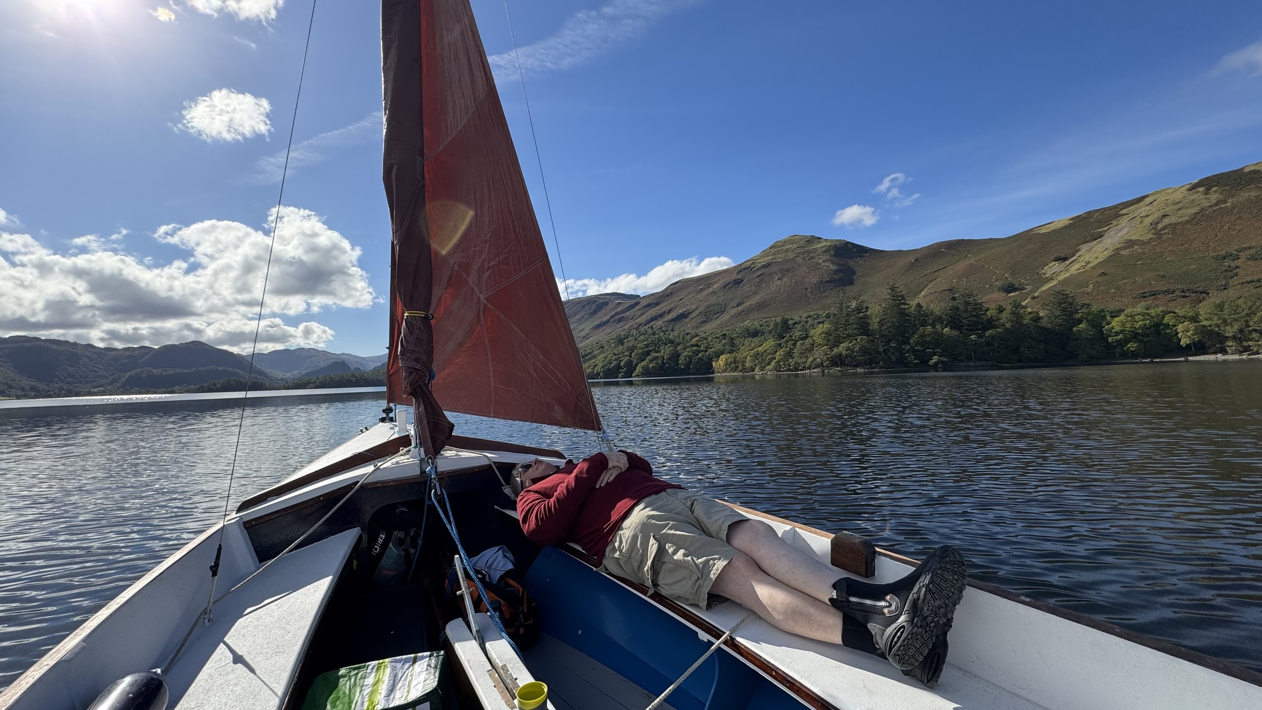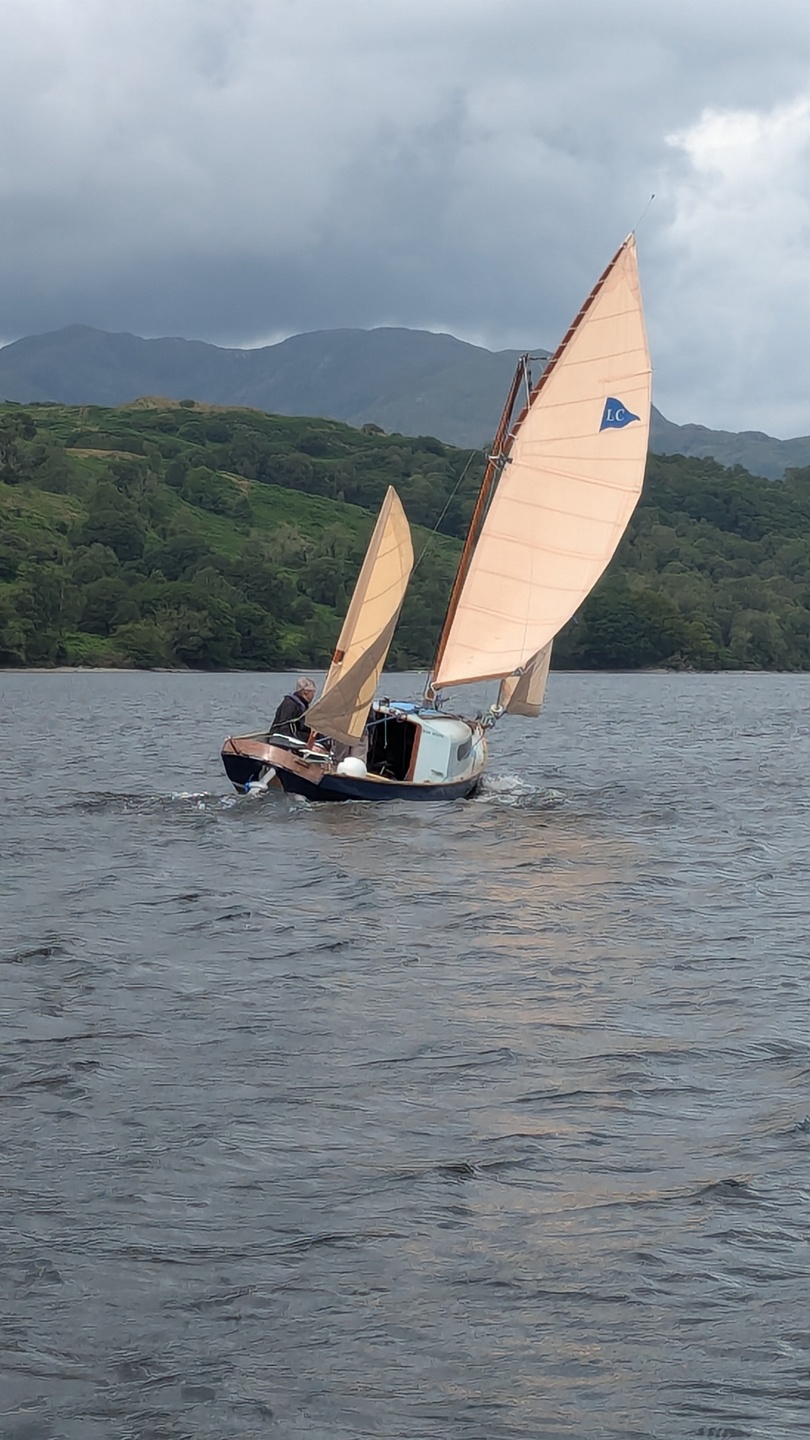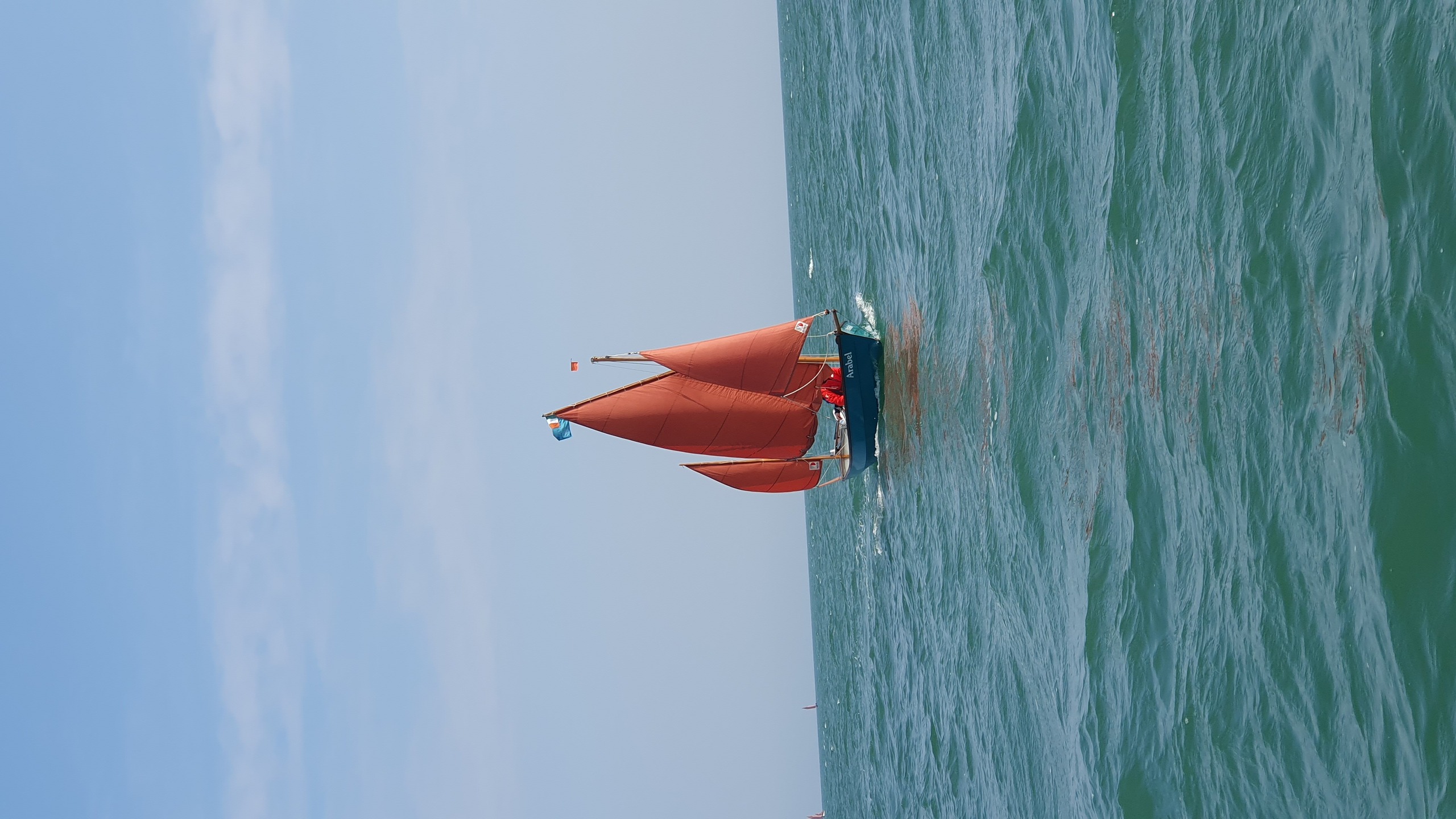 My friend Georgia's Dabber heading for Falmouth after a weekend cruising/camping in company on the Helford River. Within twenty minutes of this very benign scene, the wind was gusting force 5 and we had a fantastic broad reach sail home.