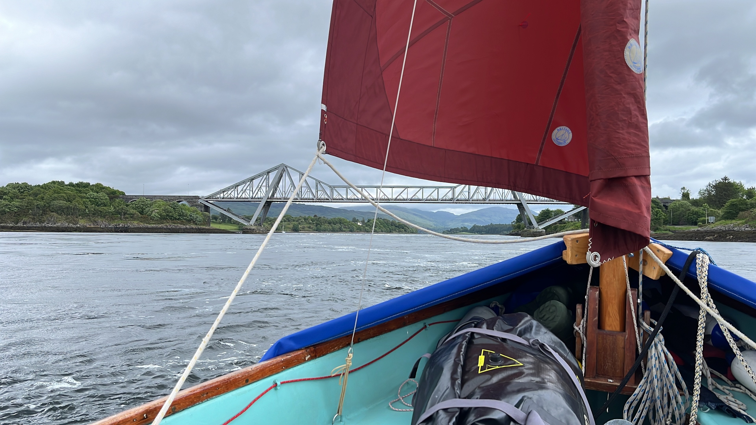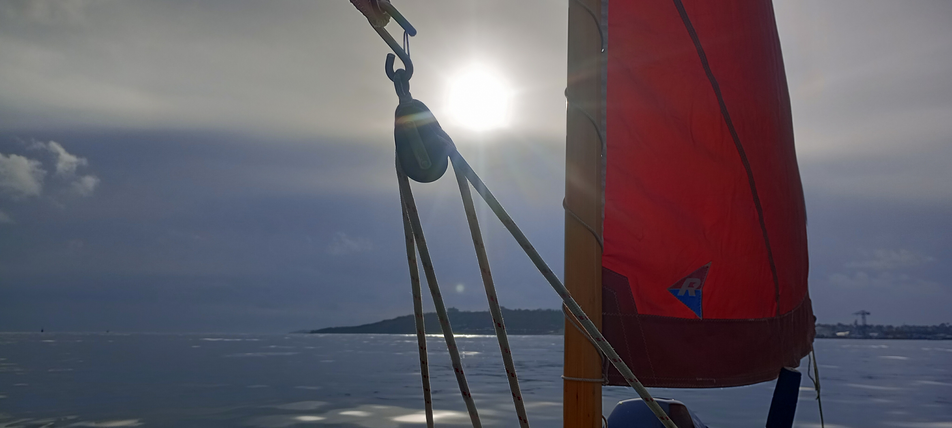 A foreboding sky frames a drift in my Coaster across Falmouth Harbour in December between winter storms.