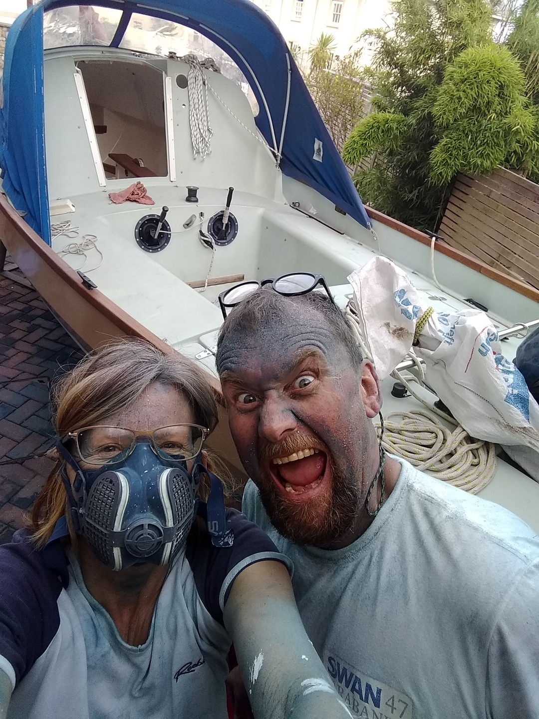 Pair of Smurfs. We had just bought our Drascombe Coaster, Sirius and wanted her to look her best no matter how messy it got.