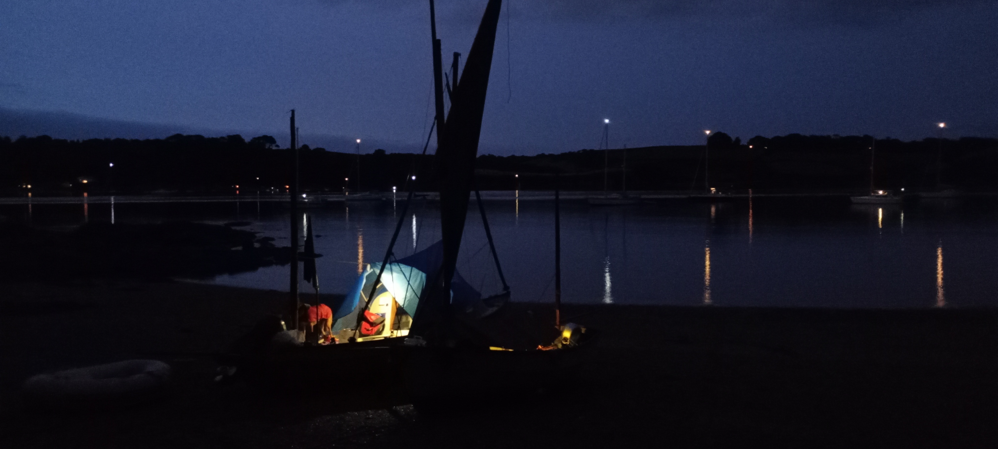 In for the night. My Coaster and my friend's Dabber beached in the Helford River. I counted twenty plus anchor lights that night out on the Passage but I think we had the best spot!