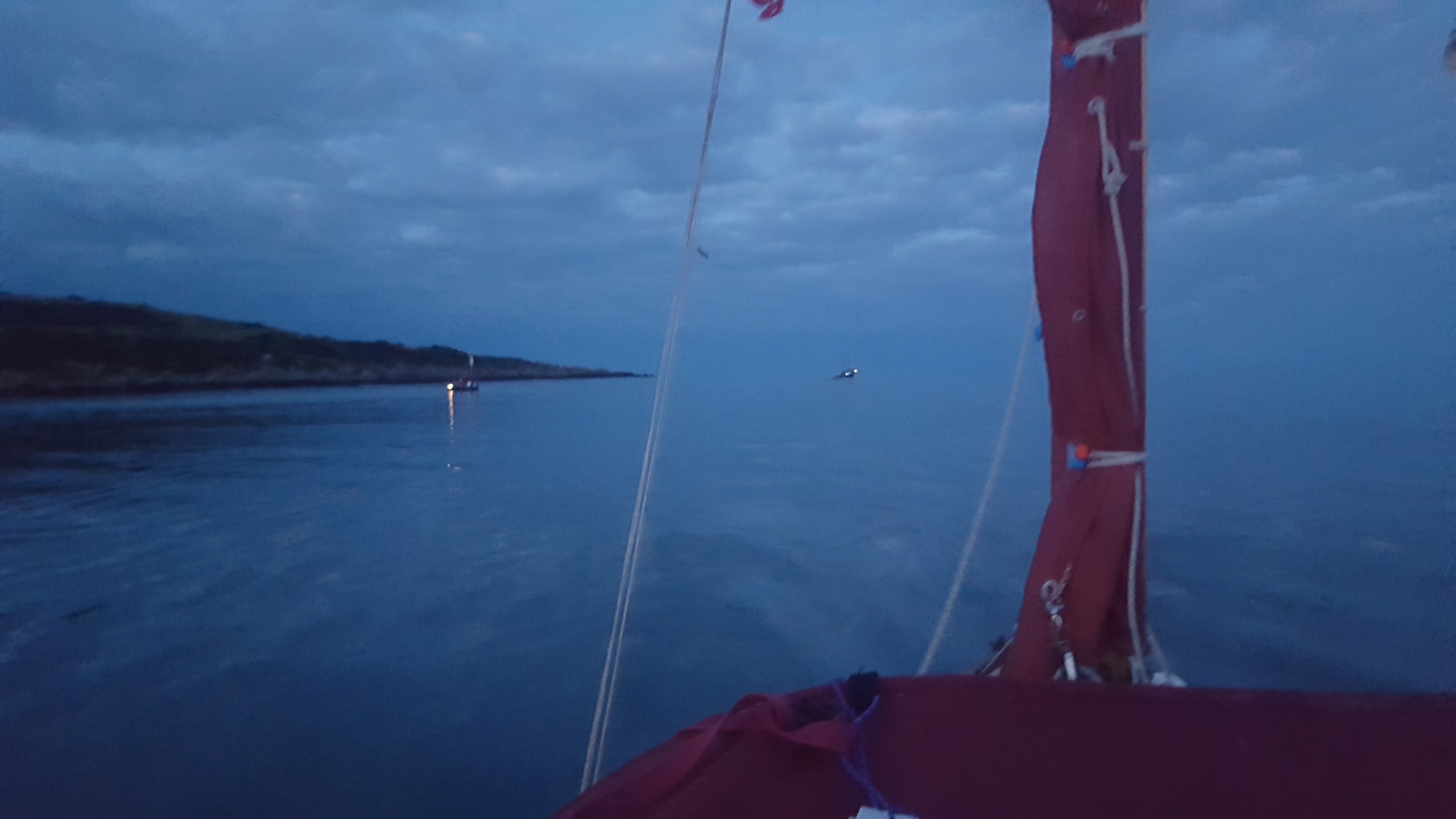 My friend Georgia's Dabber heading for Falmouth after a weekend cruising/camping in company on the Helford River. Within twenty minutes of this very benign scene, the wind was gusting force 5 and we had a fantastic broad reach sail home.