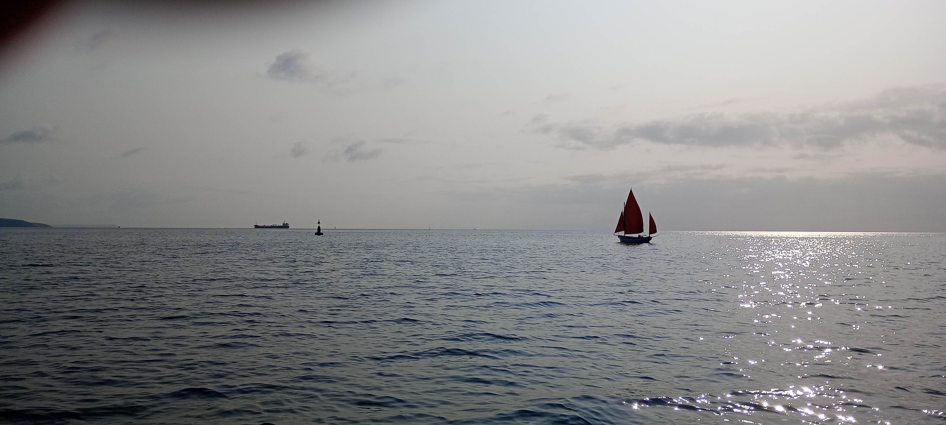 A foreboding sky frames a drift in my Coaster across Falmouth Harbour in December between winter storms.